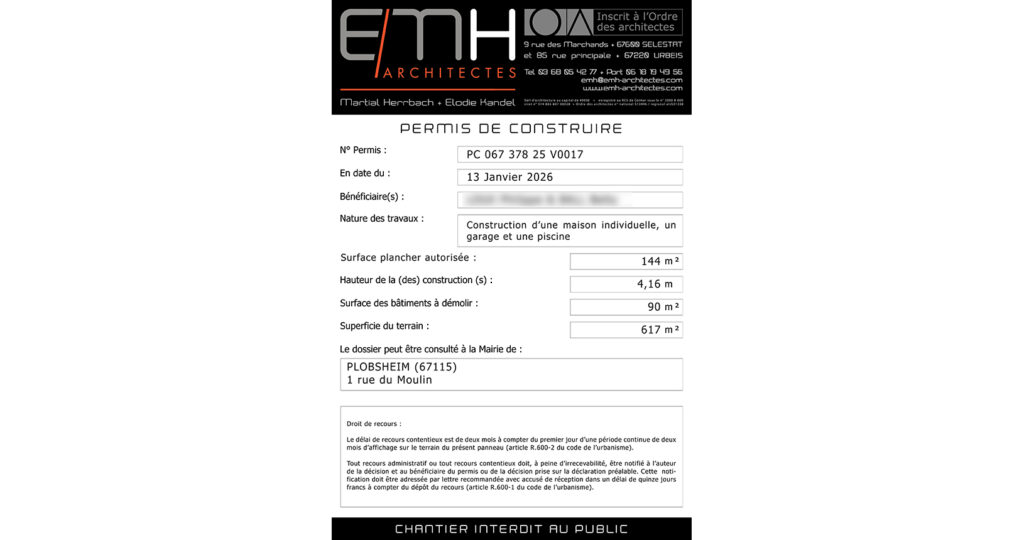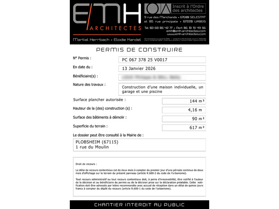 Nouveau Permis de Construire accordé à Plobsheim (67)