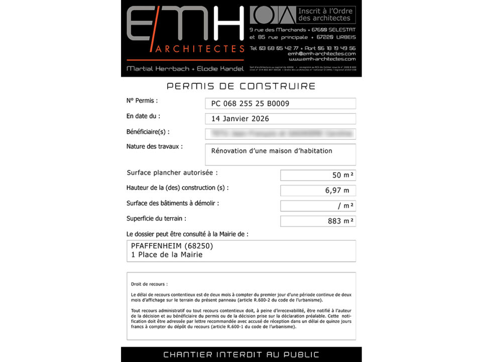 Nouveau Permis de Construire accordé à Sélestat (67)