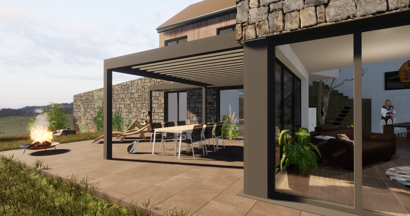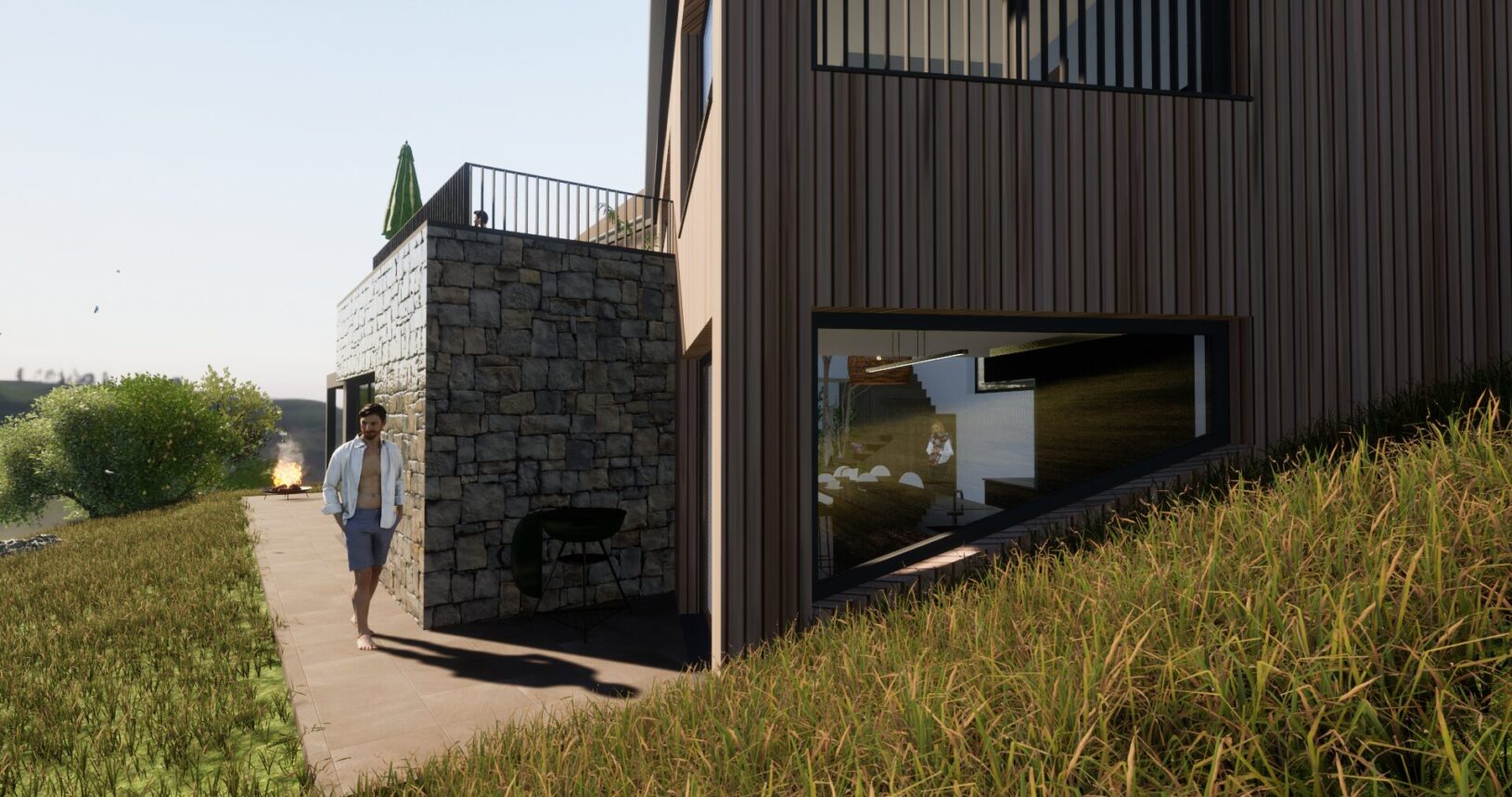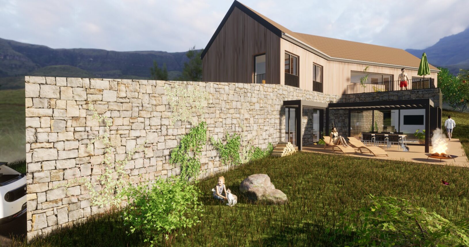 Le choix des matériaux accentue l’insertion dans le contexte, avec de la pierre et du bois pour une parfaite harmonie.