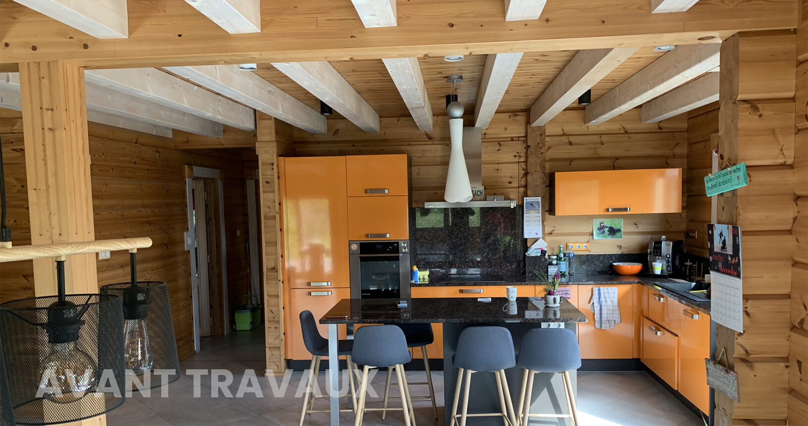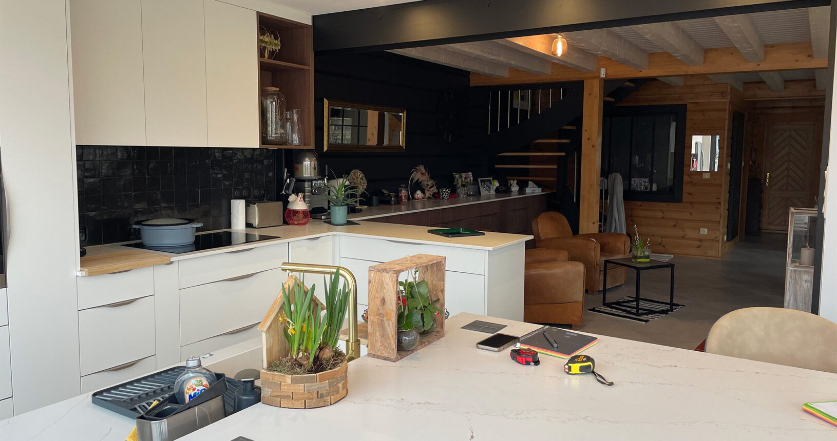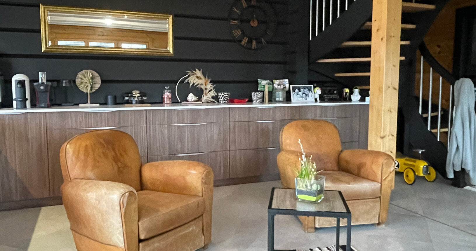 Les peintures intérieures ont été éclaircies afin de rendre les espaces plus sobres et lumineux et effacer le bois précédemment très présent. Une grande partie du mobilier a été redessiné afin de s’intégrer sur mesure aux espaces et libérer du volume.